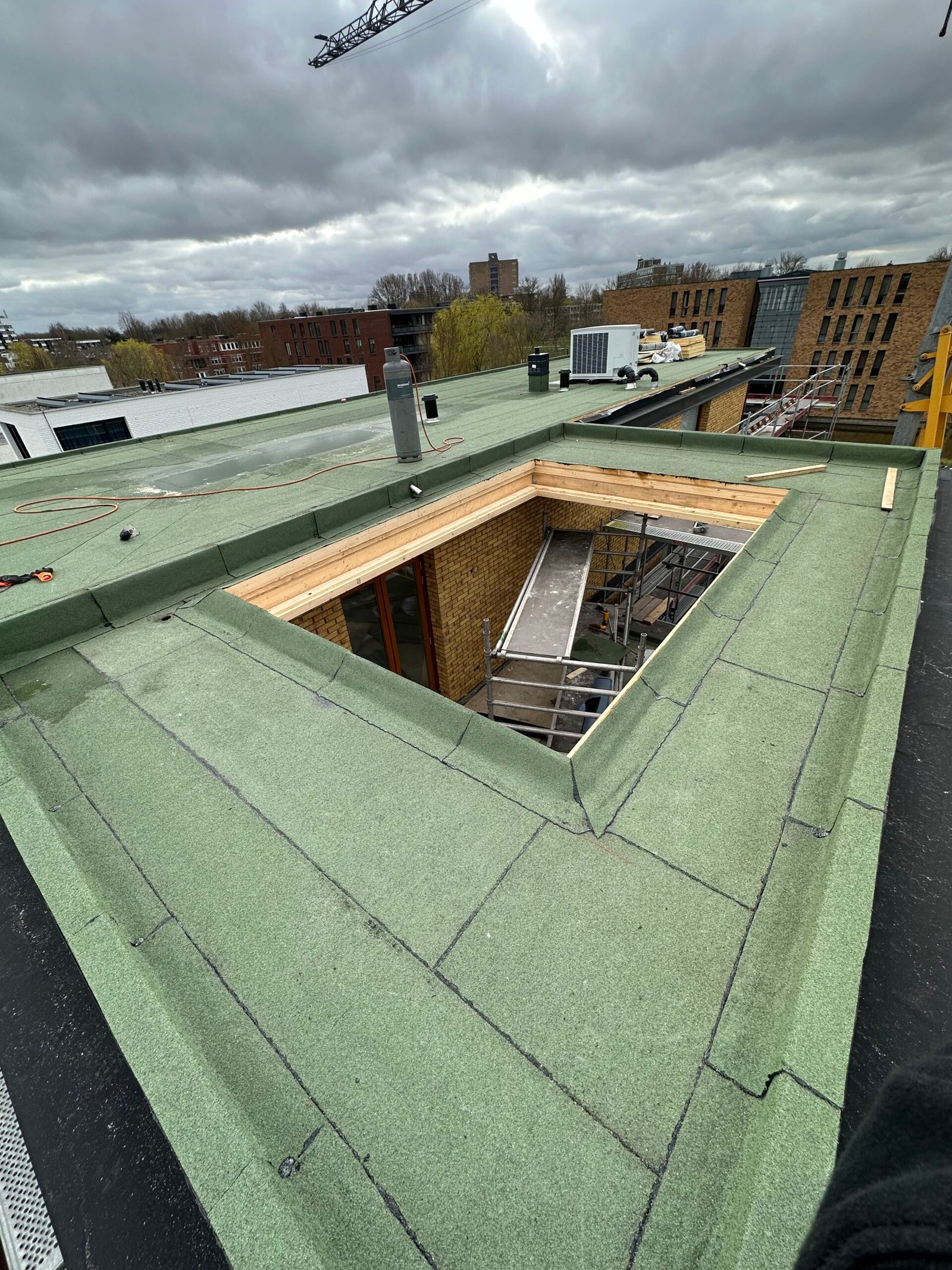 De inspecteur van Global Roof Care B.V. ontdekte dat de lekkage veroorzaakt werd door een slecht gerepareerd deel van ons bitumen dak. Dit probleem was ontstaan door een eerdere reparatie door een ander dakdekkersbedrijf. Omdat ons dak al 30 jaar oud was, adviseerde GRC om het dak volledig te vervangen. Binnen een week konden ze beginnen en het werk was binnen een dag voltooid.